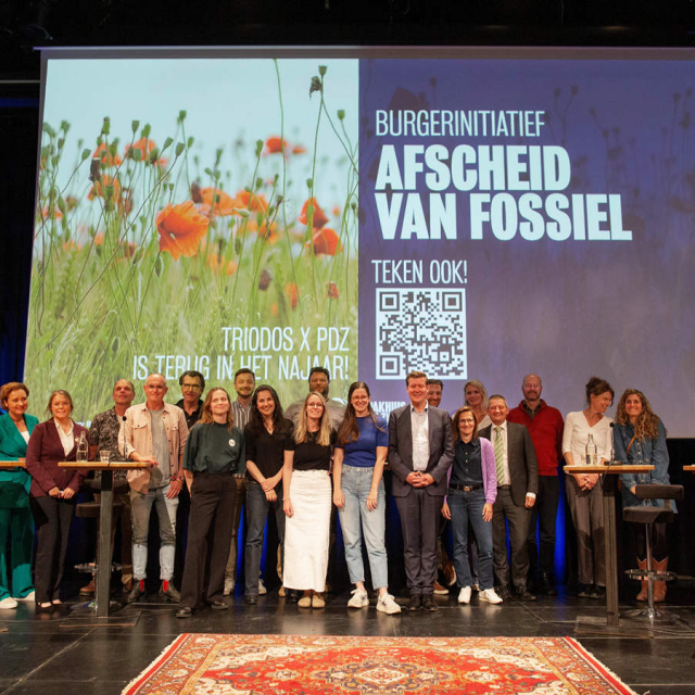 Samen met een steuncoalitie van ruim 20 organisaties is Triodos Bank een burgerinitiatief gestart met als doel dat de Tweede Kamer zich actief gaat inzetten voor een verdrag dat wereldwijd de productie van fossiele brandstoffen stopt. Als een burgerinitiatief 40.000 handtekeningen heeft, moet het voorstel worden behandeld in de Tweede Kamer.