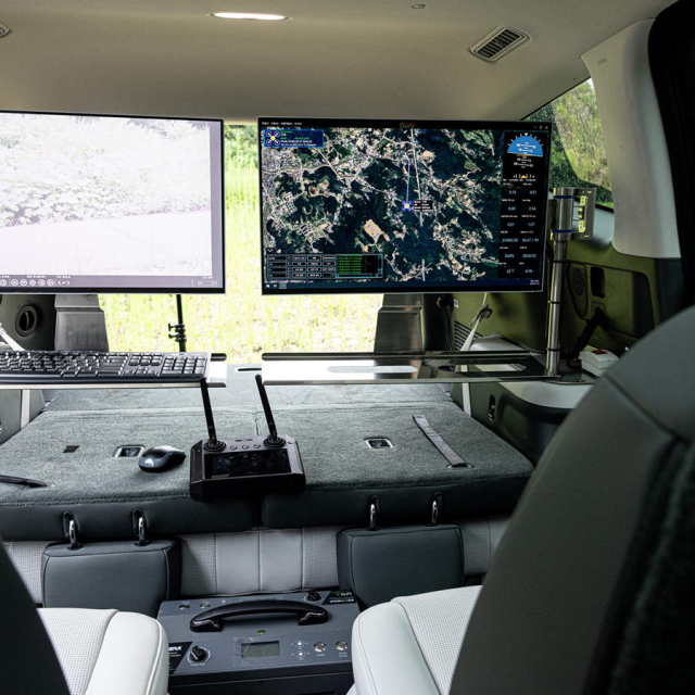 In de kofferbak van de auto bevindt zich een platform voor drones. Daardoor kunnen de drones makkelijk opstijgen en landen, waar de auto ook is. Bovendien is de IONIQ 9 uitgerust met het Vehicle-to-Load (V2L)-systeem. Dat betekent dat de auto zelf stroom kan leveren aan de drones. Er is dus geen aparte stroomvoorziening nodig.